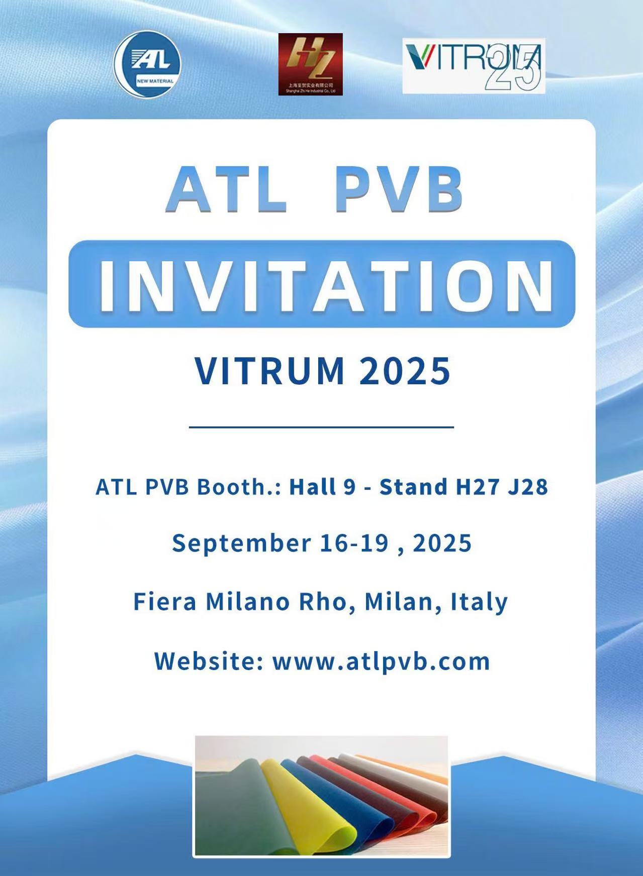 Sizi sıcak bir şekilde ziyaret etmeye davet ediyoruz ATL PVB standında VITRUM 2025 —önde gelen uluslararası cam endüstrisi fuarı. Yenilikçi PVB ara katman çözümlerini keşfetmek ve işbirliği fırsatlarını tartışmak için bize katılın.