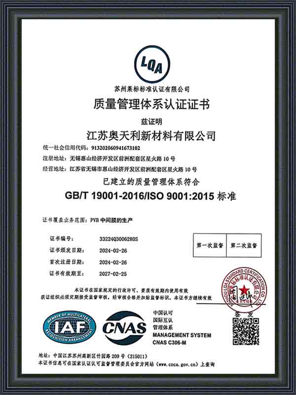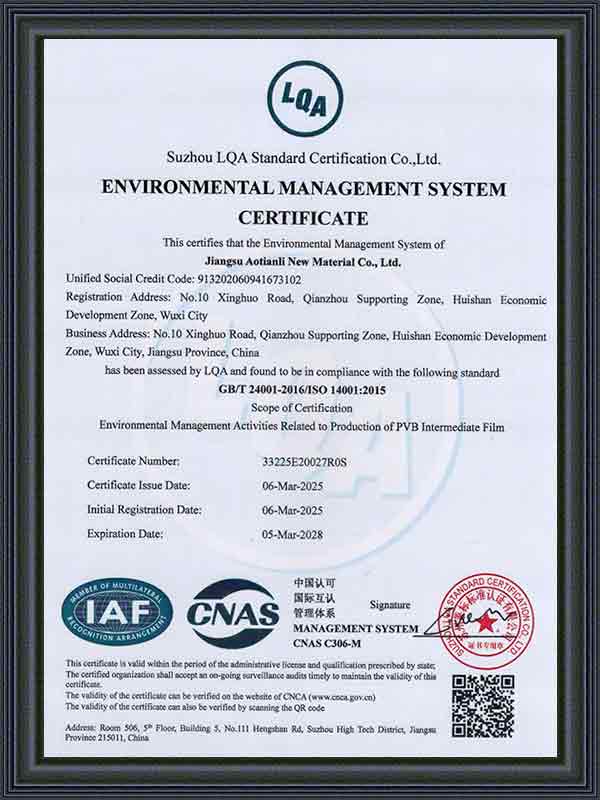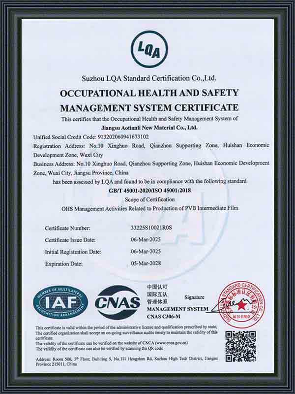2014 yılında kurulan ve merkezi Jiangsu Eyaleti, Wuxi'de bulunan Jiangsu Aotianli Yeni Malzeme Co, Ltd (ATL), yüksek performanslı PVB ara katman filmlerinin araştırma, geliştirme, üretim ve satışında uzmanlaşmış bir şirkettir. Gelişmiş üretim süreci, sürekli teknolojik yenilik ve eksiksiz bir tedarik zinciri düzeniyle ATL, hem yurt içi hem de uluslararası PVB ara katman film pazarlarında önemli bir konuma gelmiştir.